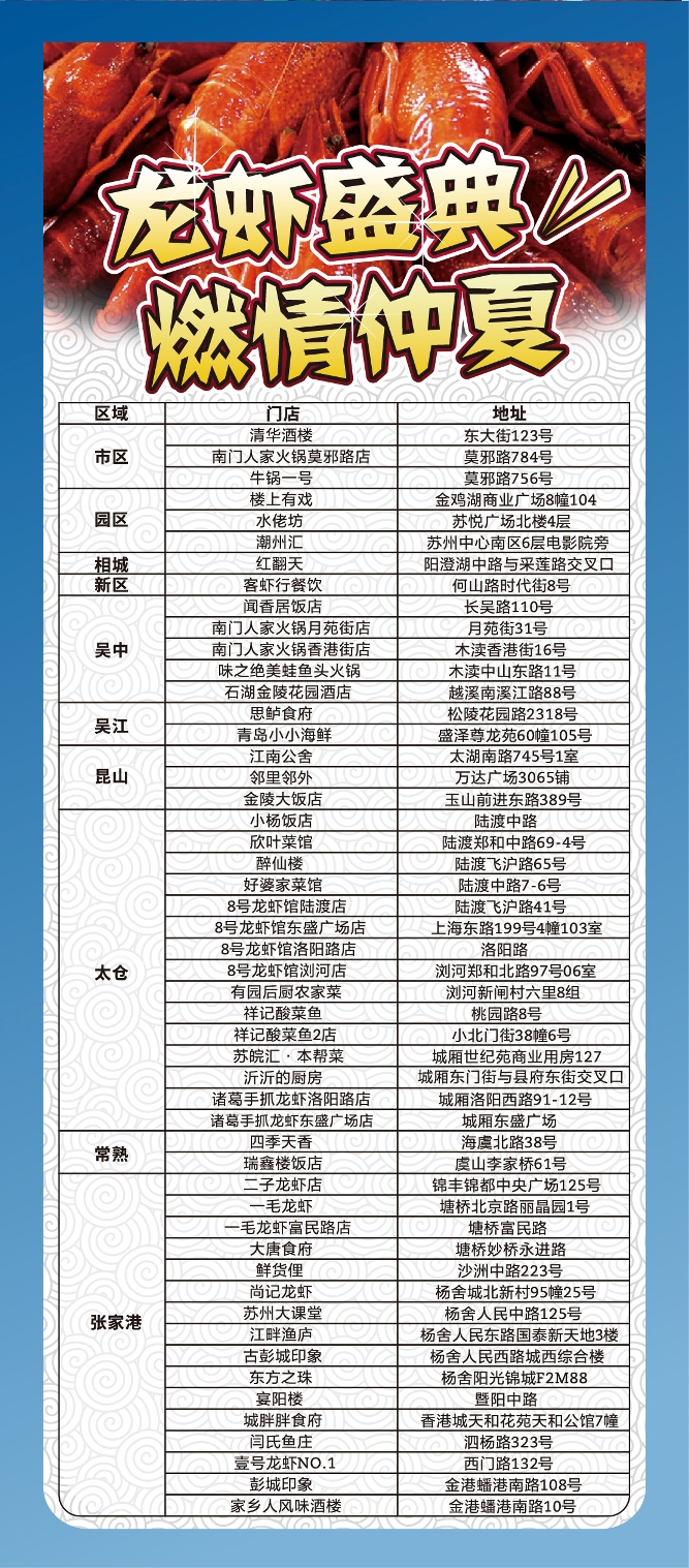 注:总行信用卡中心批复编号:322180080苏州分行:“龙虾盛典,燃情仲夏”活动(消费活动)